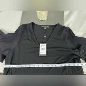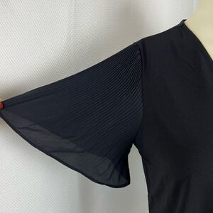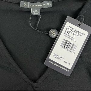 Adrianna Papell Womens V-neck Pleated Sleeve Crepe Blouse Top Black Sz Small NWT