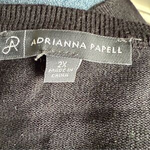 Adrianna Papell Women’s V-neck Pullover Black Textured Sleeves Sweater 2X