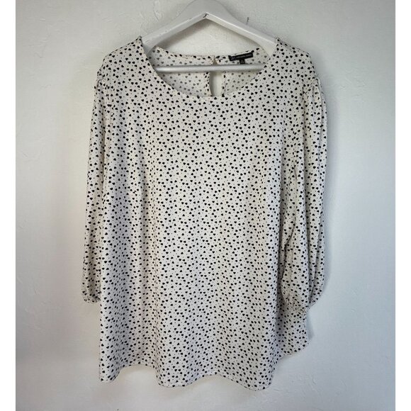 Adrianna Papell Womens White Black Heart Print 3/4 Sleeve Blouse Top 2X NWOT
