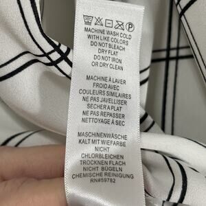 Adrianna Papell Women's White Black Sheer Window Pane Long Sleeve Blouse Large
