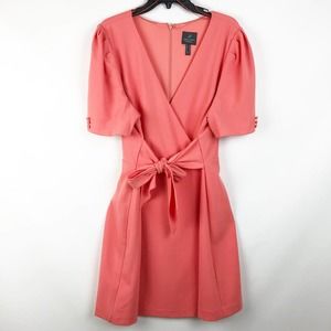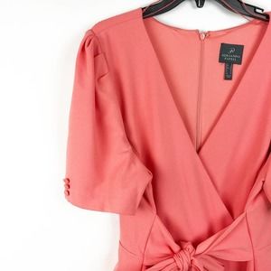 Adrianna Papell Womens Wrap Dress Size 16 Peach Blossom Crepe Tie-Front A-Line