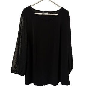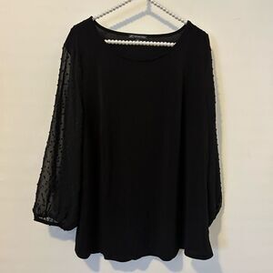 Adrianna Papell Womens 2X black Mixed Media Blouse dot mesh sleeves whimsigoth
