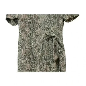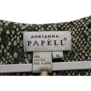 Get ready to turn heads in this stunning Adrianna Papell wrap dress! The dress features a V-neckline and short sleeves, with a tie closure that adds a touch of elegance to the knee-length dress. The green 100% silk material is both lightweight and luxurious, perfect for a summer, fall, or spring party or cocktail event.This dress is perfect for any occasion, from a Y2K-themed clubwear party to a formal event. The snake skin design adds a touch of glamour to the classic style, while the retro 90s theme creates a timeless appeal. Available in size 10, this wrap dress is a must-have for any fashion-savvy woman who wants to make a statement.