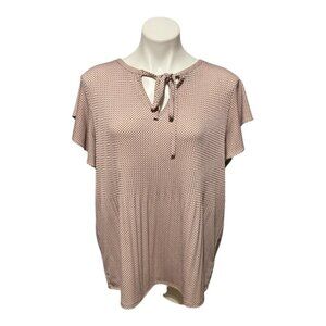 Adrianna Papell XL Mauve Neck Tie Flutter Sleeve Printed Blouse