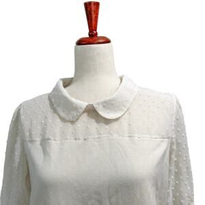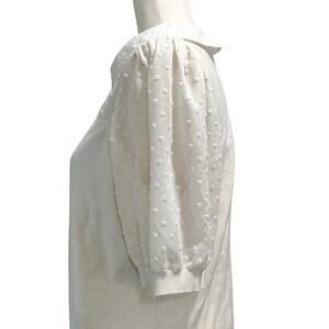 Adrianna Papell XL Top with Sleeves Schoolboy Cream Dotted Sleeves Blouse Shirt