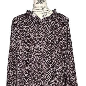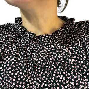 Adrianna Papell X-LARGE Moss Crepe Ruffle Neck 3/4 Sleeve Heart Patterned Top