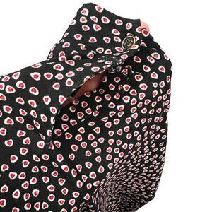 Add a touch of romance to your wardrobe with this flowy heart-print blouse! Featuring a delicate ruffle collar and elastic cuffs for a feminine touch, this top blends elegance with comfort. The lightweight fabric drapes beautifully, making it perfect for work or casual outings. Dress it up with trousers or keep it casual with jeans for a chic, effortless look!