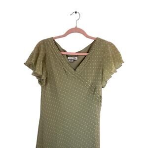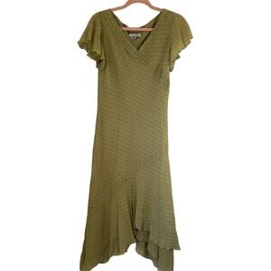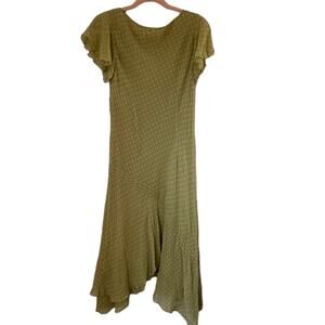 Adrianna Papell Y2K Green Polka Dot Silk Boho Romantic Feminine Midi Dress 12