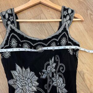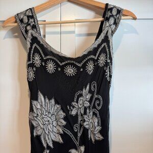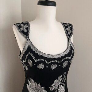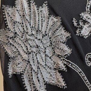 Adrianna Papell Y2K Silk Beaded Maxi Dress Black Floral Embroidery 0/XS