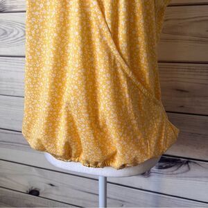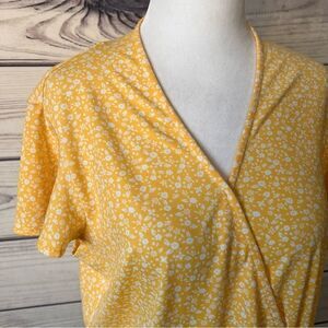 Adrianna Papell Yellow Floral Short Sleeve Wrap Blouse