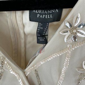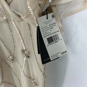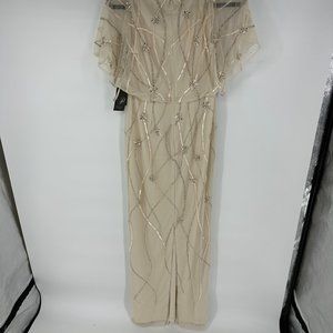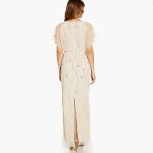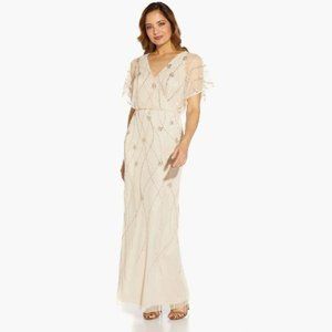 Adrianna Papell beaded surplice blouson gown in color soft silk NWT US 2