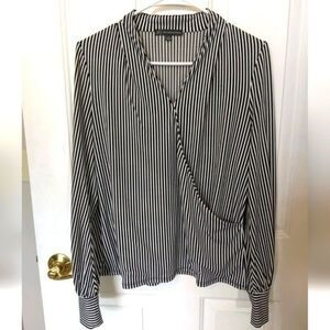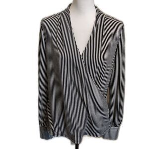 Adrianna Papell black and white striped v-neck long sleeve top - medium