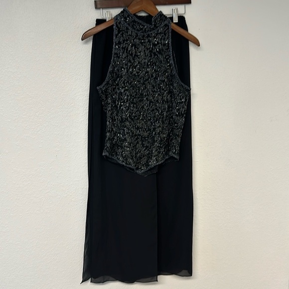 Adrianna Papell black formal silk halter top black wide leg formal pant 2 piece
