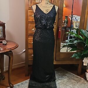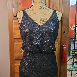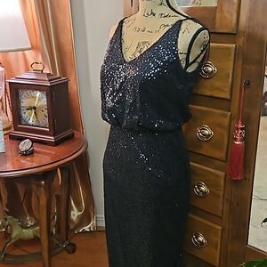 Adrianna Papell Black sequin sleeveless column dress, V neckline, invisible back zipper, fully lined size 4. Excellent pre loved condition, measurements in pics, smoke free home, ships next day. Bundle and Save!