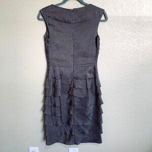 Adrianna Papell dark champagne dress shimmer tiered shutter pleated dress size 4