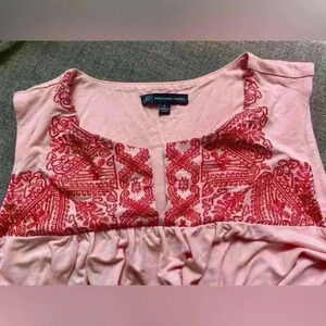 Adrianna Papell embroidered peach color tank top Asymmetrical Hem Small