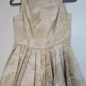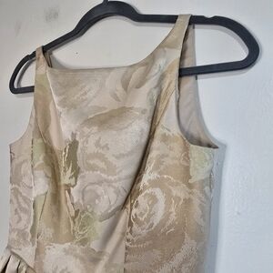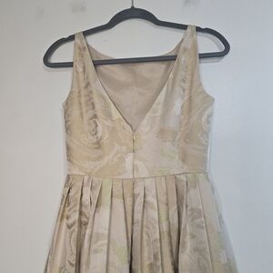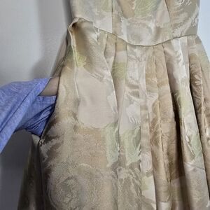 Adrianna Papell gold Rosette Gown with pockets floor lenght full skirt