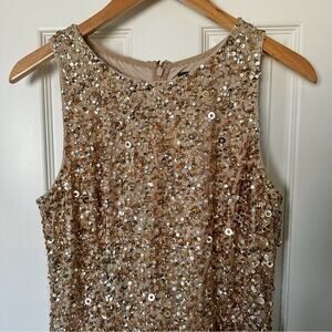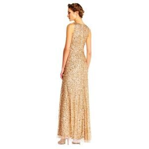 Adrianna Papell halter crunchy beaded gown in champagne gold, size 12 NWT
