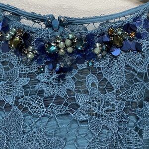 Good condition, but the slit on back has a small tear on seam. See photo. Also missing a tie, but can be worn with any belt or ribbon.