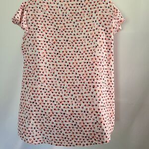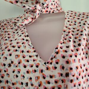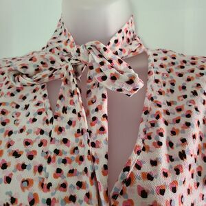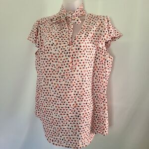 Adrianna Papell lightweight floral flutter sleeve bow tie neck Blouse top sz L