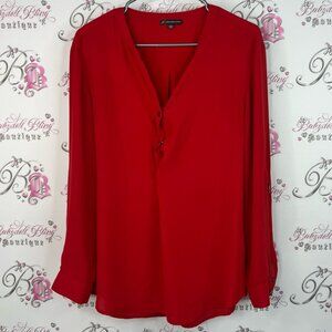 Adrianna Papell long sleeve bright Vibrant Red Blouse silver details buttons
