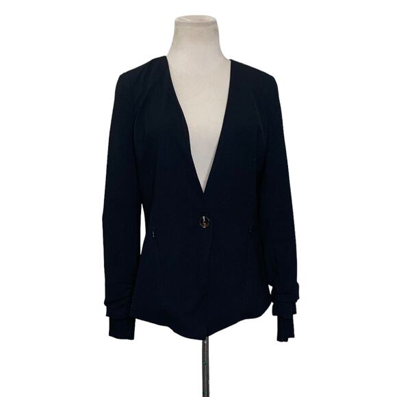 Adrianna Papell long sleeves ruched wrists one button black blazer size 6