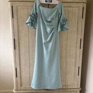Adrianna Papell maxi dress, light green, 3/4 sleeve with flower