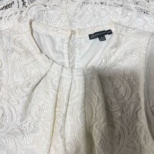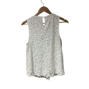 Elegant and feminine, this Adrianna Papell sleeveless lace top is a must-have for any occasion. The delicate lace fabric is beautifully detailed with intricate patterns, creating a sophisticated and romantic look. The keyhole neckline adds a touch of allure, while the pleated bodice creates a flattering silhouette. This top is perfect for pairing with jeans, skirts, or dress pants, and it's sure to turn heads wherever you go.