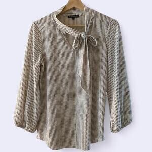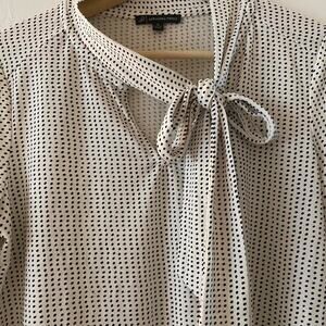 Adrianna Papell white and black Polka Dot Blouse with tie neck