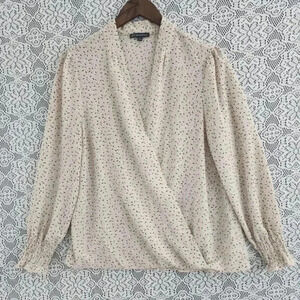Adrianna Papell wrap pattern long sleeve chiffon blouse M
