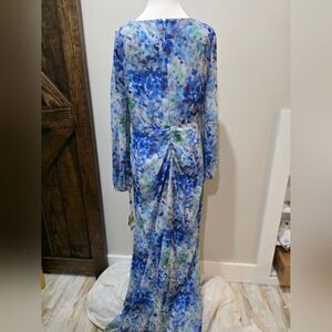Adrianna Papell Abstract Floral Chiffon Gown NWT Size 14 Blue And White