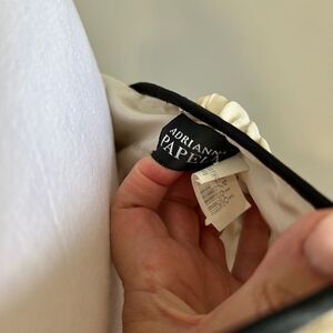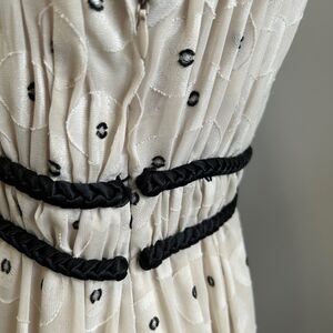 This cream sundress by Adrianna Papell is perfect for casual outings or as a wedding guest. It features a sleeveless design with a scoop neckline and a flattering empire waist accentuated by a black ribbon. The A-line skirt flows gracefully to a midi length, showcasing a delicate lace overlay for a romantic touch.