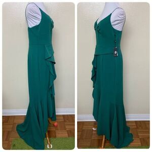 Adrianna Papell Ruffled Cascade Formal Dress Size 4 High Low Green V Neck $189