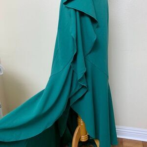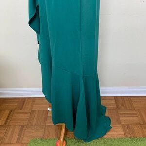 Adrianna Papell Ruffled Cascade Formal Dress Size 4 High Low Green V Neck