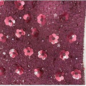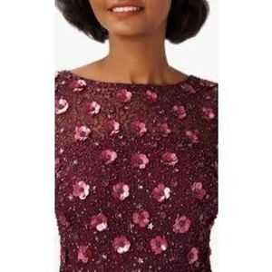 Adrianna Papell Sz 6 Floral 3D Sequin Ball Gown Maroon Sparkle High Slit Formal