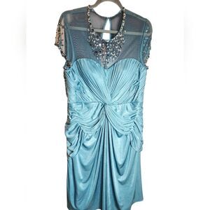 Adrianna Papell Teal Beaded Dress