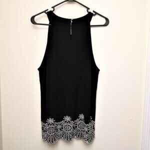 Adrianna Papelle Black & White Embroidered Hem Halter Top Size L