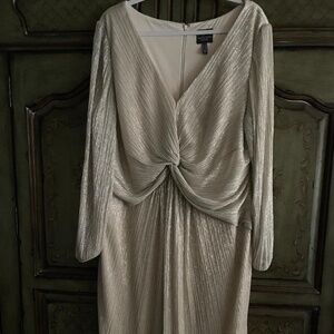 Adrianna Papell 22W Shimmer Sheer blouson sleeve Gown with zip back dry clean only