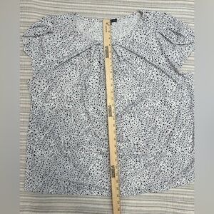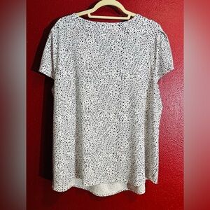 Adrianna Pappel 2X Top Stretch Knit White Black Dot Pleated Round Neck SS Blouse