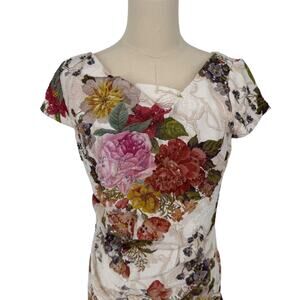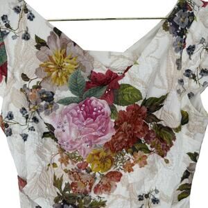 Adrianna Pappell Beaded Floral Metallic Textured Midi Cocktail Dress, Size 6