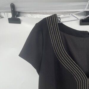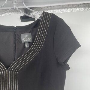 Adrianna Pappell Black/Gold Sheath Dress Embroidered Short Sleeve Size 6