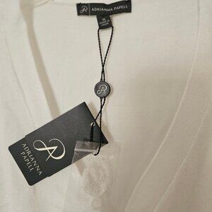Brand new with tags, Adrianna Pappell XLM V-neck cardigan. Perfect for fall weather. Sheer sleeves decorated with raised polka dots.