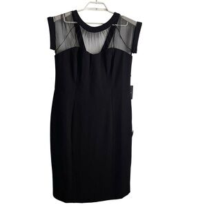 Adrianna Pappell women’s Illusion crepe Sheath Dress NWT size 16 black