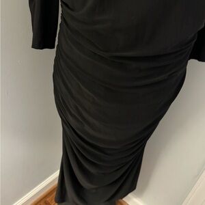 Adrianna papell black beaded 3/4 Sleeve Evening Bodycon Dress Stretchy 16