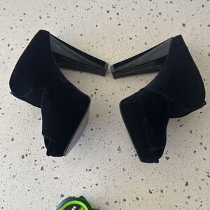 Adrianna Papell Black Velvet Mules Block Heel Peep Toe Dress Pumps Shoes Women’s Size 8