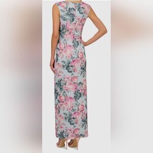 Adrianna Papell Blue/Pink Floral Metallic Jacquard Gown Dress NWT Size 12