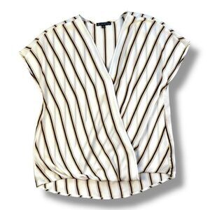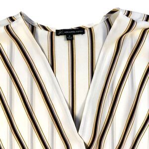 Adrianna Papell Cream Striped V-Neck Wrap Blouse Sz M