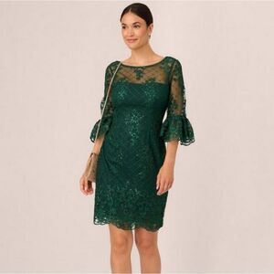 Adrianna Papell Embroidered Bell Sleeve Dress Size 2