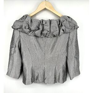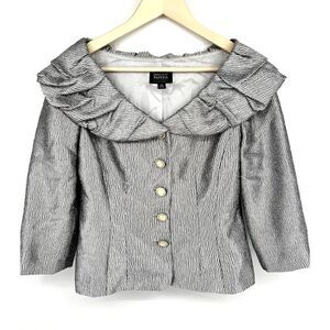 Adrianna Papell Evening Essentials Blazer Women Size 8 Metallic Silver Ruffle