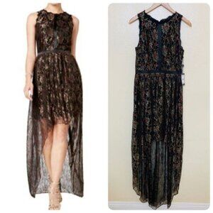 Adrianna Papell Formal High Low Metallic Lace Scalloped Trim Dress 6M Black Gold